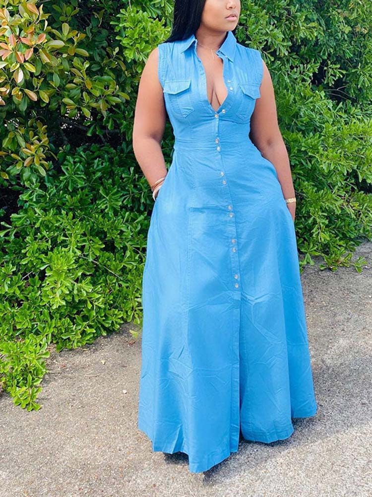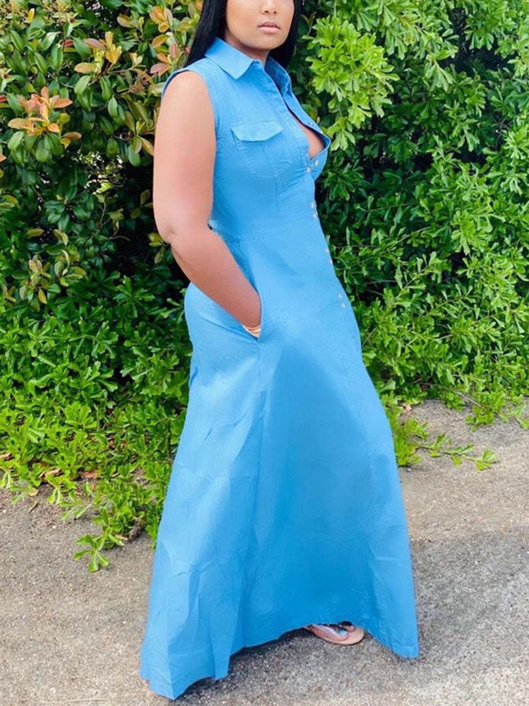 Casual Sleeveless Button Shirt Dress